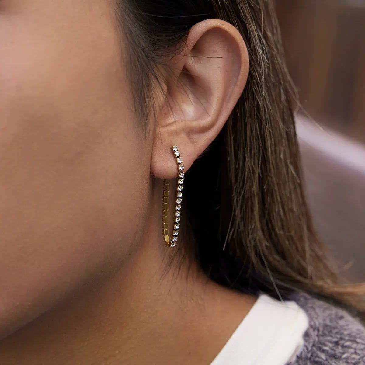 Add a touch of show-stopping glamour to your wardrobe. These beautiful hanging earrings feature a delicate, flowing structure, highlighted entirely with brilliant AD stones. The intense sparkle makes them truly moment-catching, providing the perfect glamorous finish. Slip them on and instantly transform your style—they are the definitive accessory for your best party outfits.
